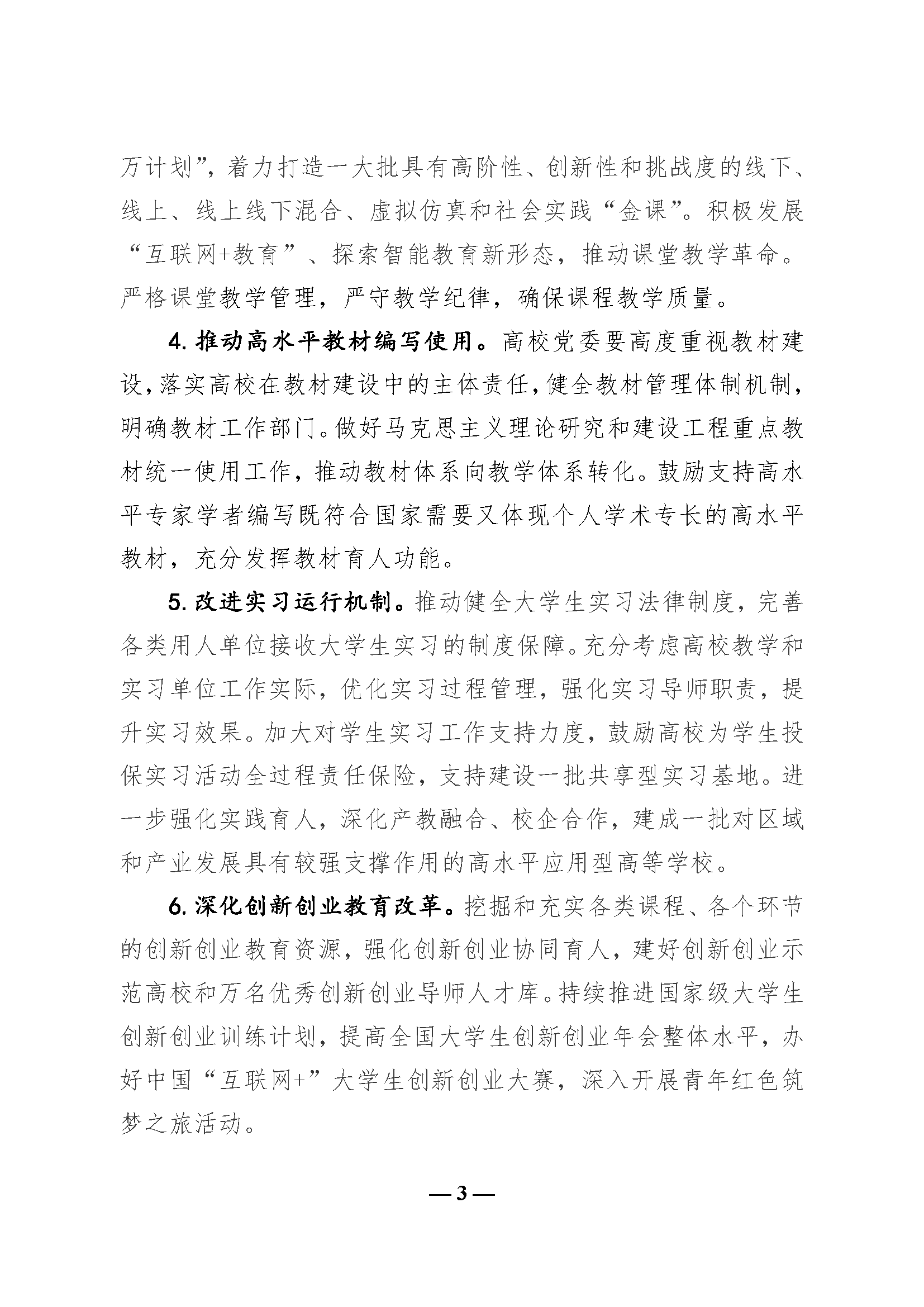 教育部关于深化本科教育教学改革全面提高人才培养质量的意见(教高〔2019〕6号